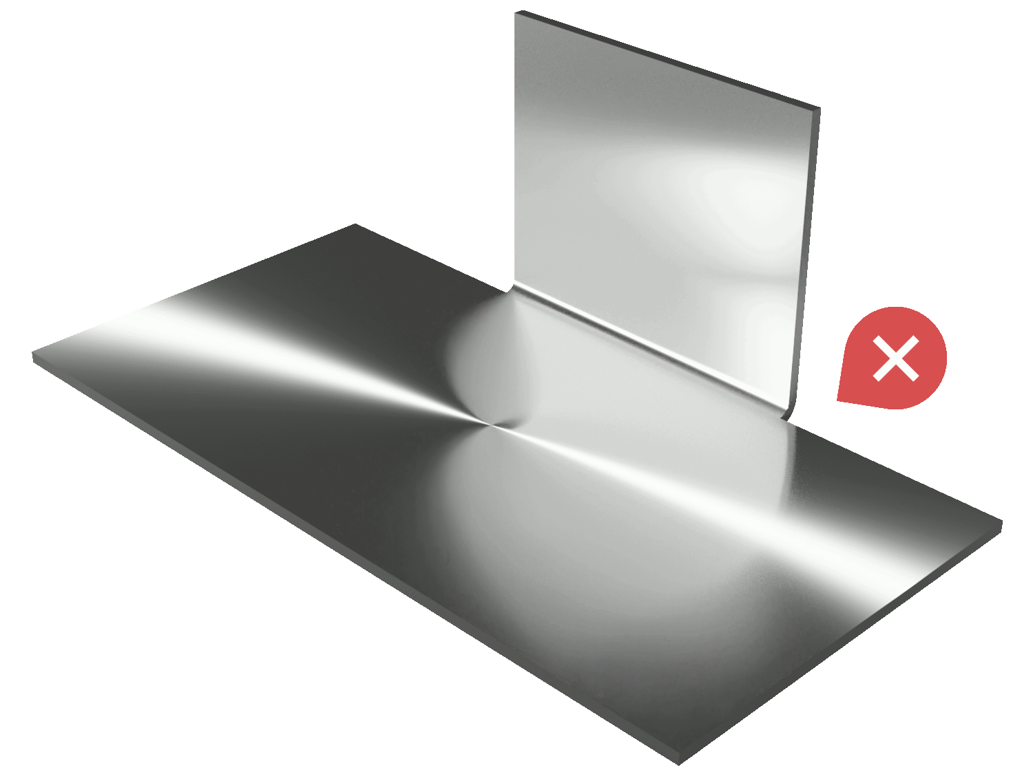 Demzufolge muss bei drei sich kreuzenden Biegelinien eine aufgetrennt werden. Muss auch diese Kante anschließend geschlossen sein, muss auf eine Schweißnaht oder ein anderes Herstellungsverfahren zurückgegriffen werden.