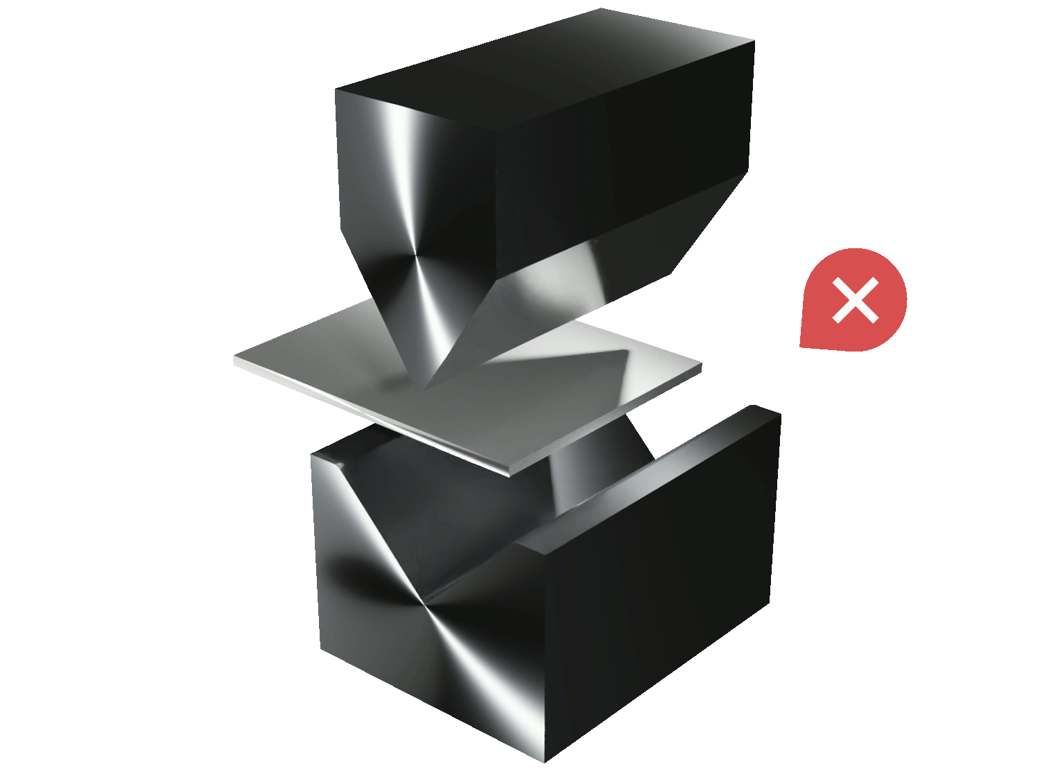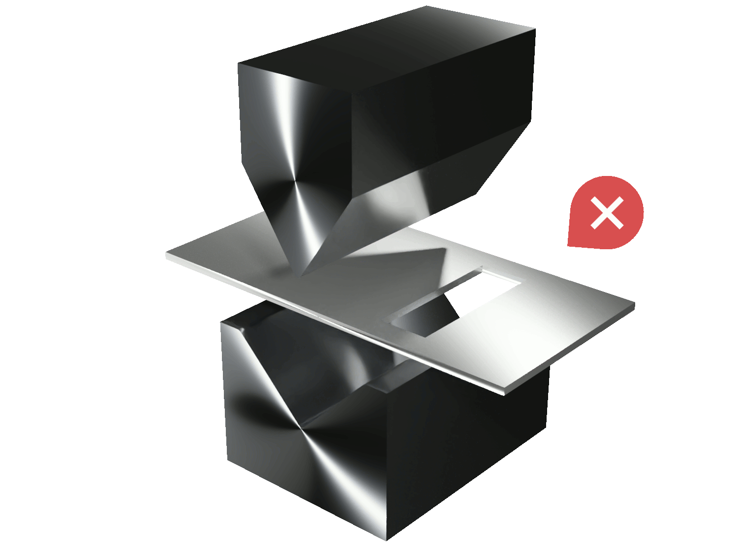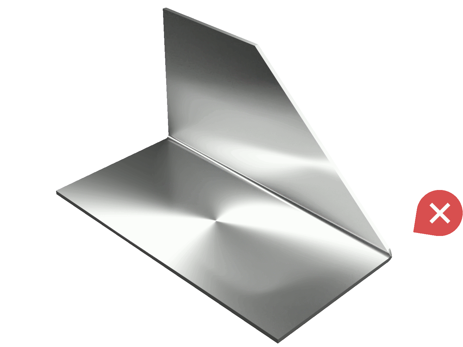 Schräge Kanten zur Biegelinie hin sind zu vermeiden, da sonst werkzeugbedingt keine homogene Biegung entlang der vorgesehenen Kante möglich ist.